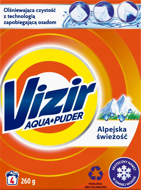 Vizir waspoeder Alpine Fresh voor witte was. Doos van 24 stuks