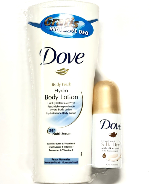Dove Body Fresh Hydro Lotion + Dove Deodorant Silk Dry.