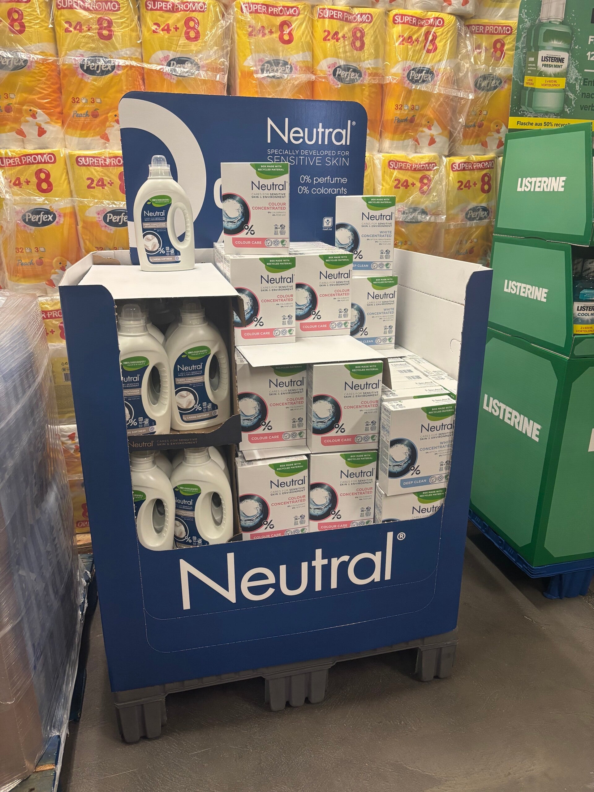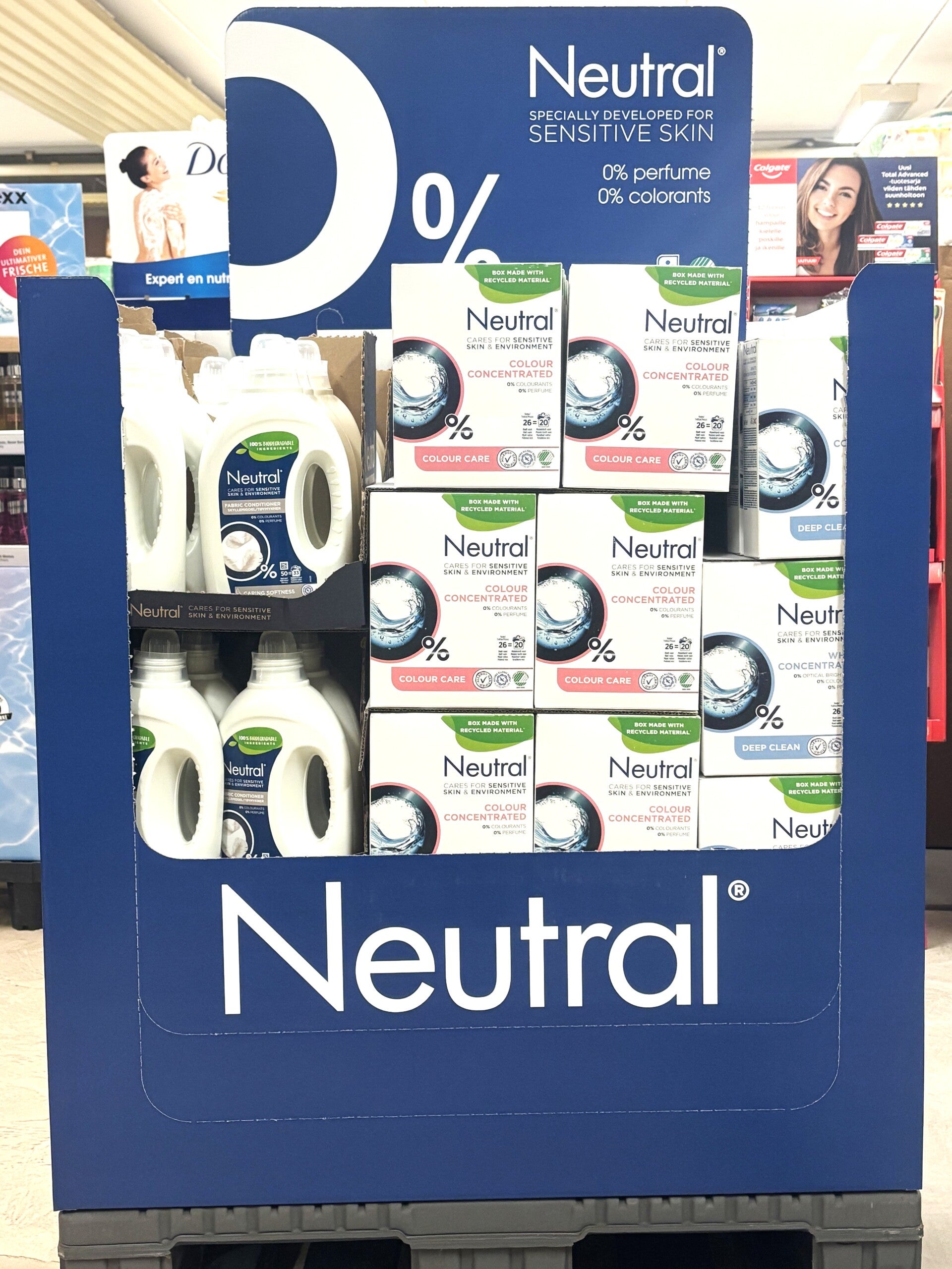 Neutral Waspoeder Color 0% 975gr 20sc 84 stuksNeutral waspoeder White 0% 975gr 20sc 48 stuksNeutral Wasverzachter 0% fabric conditioner 1L 33sc 60 sttuks